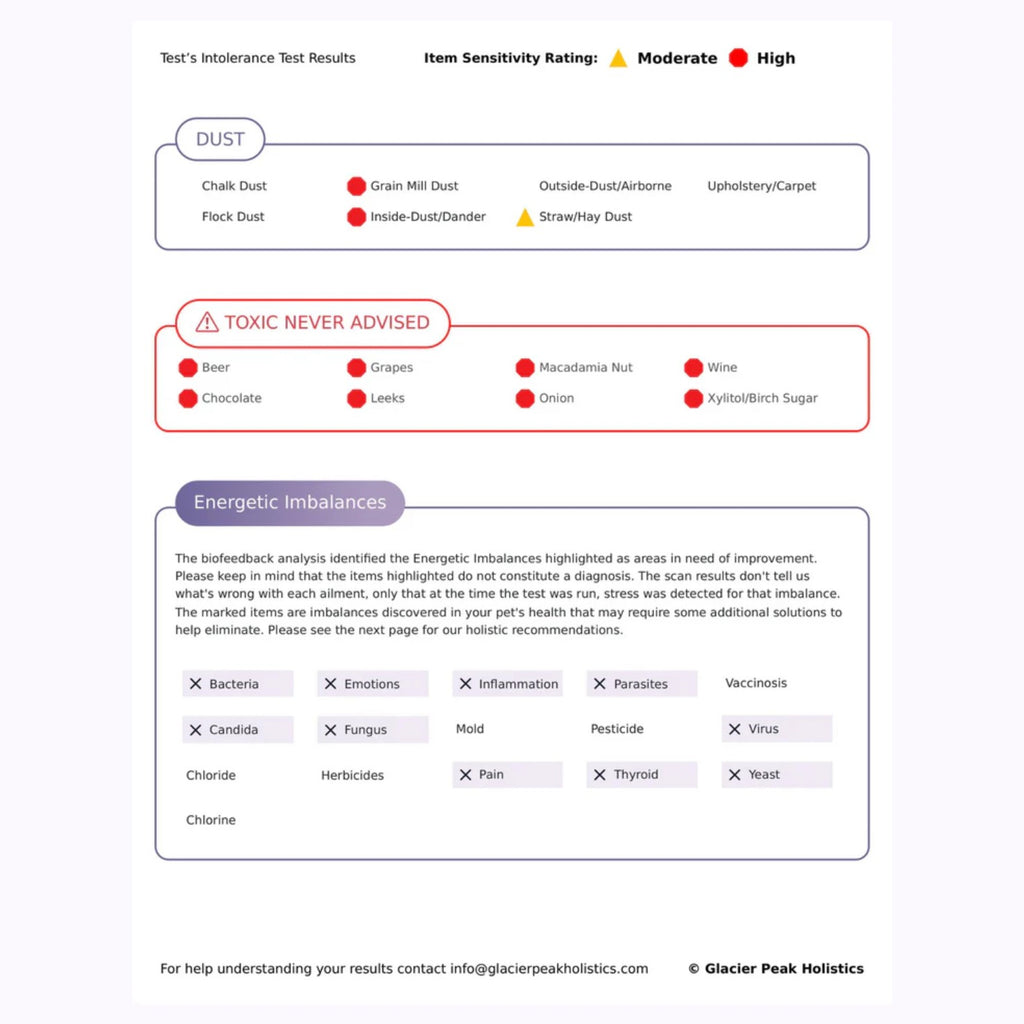 "I have been familiar with bio-resonance testing for many years, and I have complete confidence with their results. I am delighted that Glacier Peak Holistics is offering their wellness scan for pets. As a holistic vet who does consultation work now, this test has helped me identify stressors that helped us resolve many health issues. I just did a Wellness Life Stress Scan (Pet Intolerance Test) for my senior dog last week." -Dennis W. Thomas, DVM, CVA